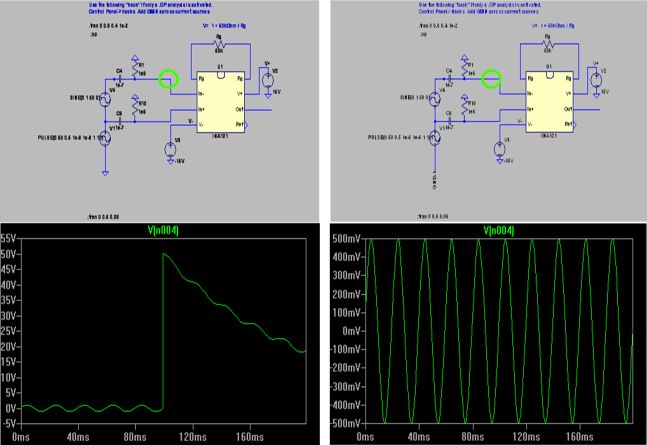 > Hallo, eine kleine Verständnisfrage: Mal angenommen, es liegt ein > symmetrisches Signal vor: S+ und S-, meinetwegen ein Sinus mit 1V > Amplitude. Beide haben eine Offsetspannung von 50V gegen die > Schaltungsmasse. Könnte man jetzt das Signal mit einem > Differenzverstärker messen, indem man kapazitiv die beiden Signale > einkoppelt auf einen OPV, aber die Schaltungsmasse nicht verwendet? Also > so: > > R1 > S+ --------||-----------------------OPV(+) > C1: 2,2uF/5V R2 > > R3 > S- --------||-----------------------OPV(-) > C2, 2,2uF/5V R4 > GND2 (z.B. OPV-Schaltung mit > Batteriebetrieb) > (DC-Offset=50V) > > > GND1 kann man machen, ist aber nicht ratsam. Der Differenzverstärker hat nur einen begrenzten Gleichtaktbereich, der bei getrennten Massen durch Störsignale leicht überschritten wird. > Oder andes gefragt: Ist das eine Möglichkeit, die Signalmassen GND1 und > GND2 zu trennen und dabei den Offset zu eliminieren? R1 bis R4 sollen > Spannungsteiler sein zwischen der Betriebsspannung des OPV und GND2.. Es ist garnicht nötig, die Massen aufzutrennen. C1 und C2 "eliminieren" doch sowieso den Gleichspannungsanteil, sofern sie min. 50 Volt Spannungsfestigkeit haben. Jörg