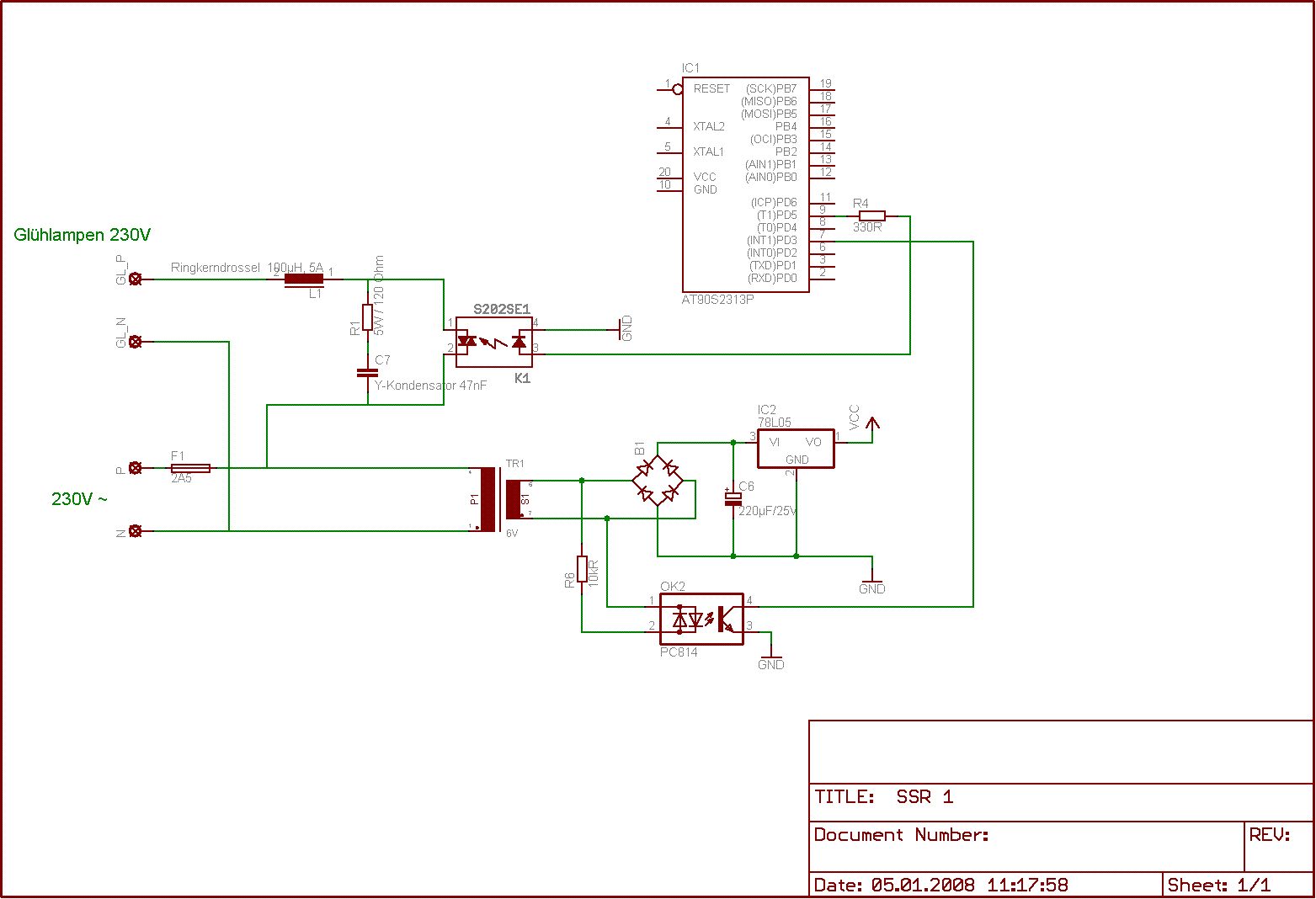 Hallo, ich würde mich freuen, wenn sich doch noch jemand den Schaltplan anschaut und mir die sicherlich vorhandenen Fehler aufzeigen würde. Es geht nur um die SSR und Nullspannungsschalter - Schaltung!