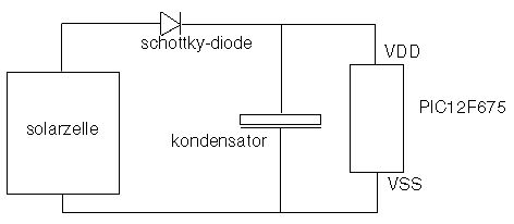 OK, bei der Solarschaltung lag es vielleicht doch an der zu geringen Spannung unter Last (hatte vorher nur die Leerlaufspannung gemessen). Bei nur 1 V hilft natürlich auch kein Kondensator. Trotzdem versteh' ich nicht, warum der Strom durch den PIC fast wie kurzgeschlossen hindurchweht. Selbst wenn man alle Stromfresser aktiviert hat, sollten es doch nie mehr als ein paar 100 uA sein bei 4 MhZ mit internem Oszillator. Oder messe ich falsch? Ich verbinde die Masse am Messgerät mit der des Solarmoduls und den Pluspol vom Messgerät mit der Masse am PIC.
