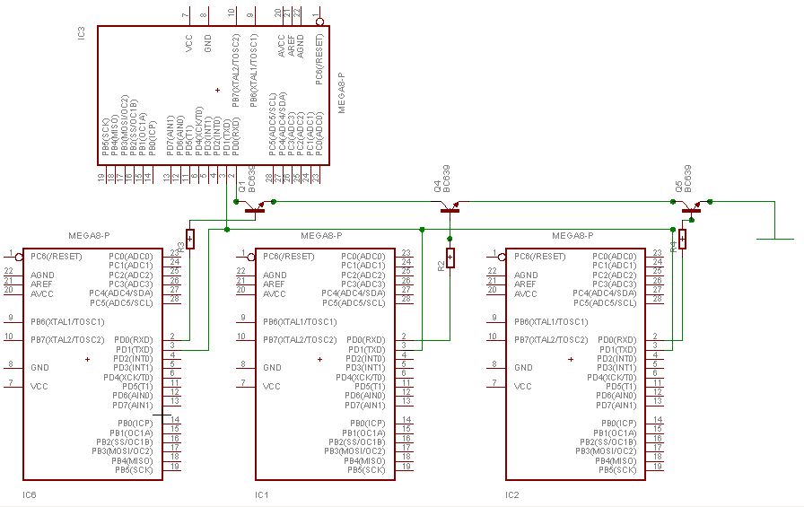 ankommt und setzt dann seinen PORTD,1 auf LOW. Die anderen 2 Controller