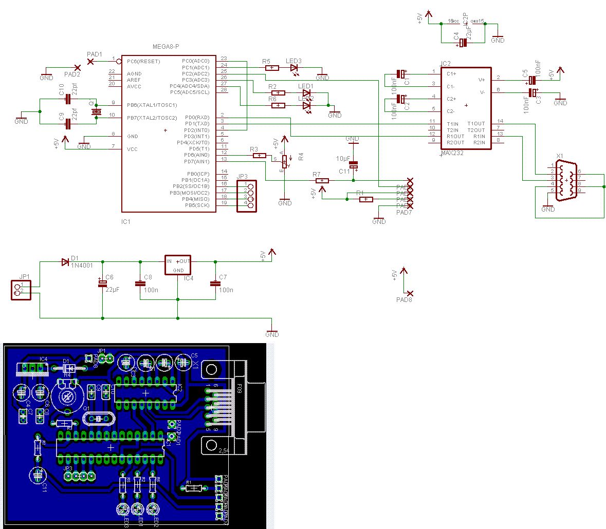 Ich hab mir gestern eine platine für meinen atmega8 geätzt. Leider funktioniert der uart nicht so richtig. (senden funktioniert, empfangen nicht). im anhang seht ihr meinen schaltplan + layout. kann mir bitte jemand helfen? (an der software des µC kann es nicht liegen)