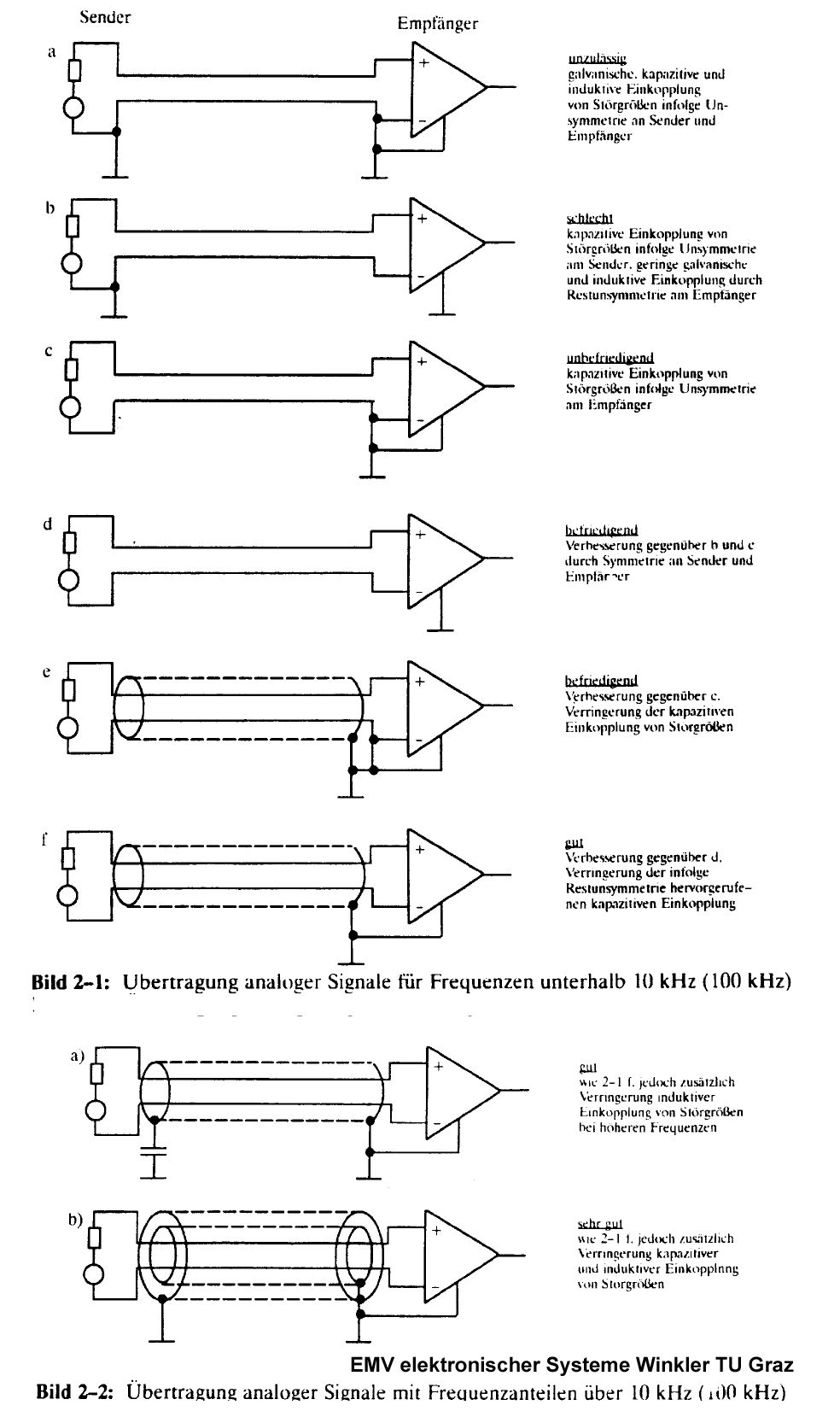 Hi, Signalamplitude: 0-1V messen Ausgangsimpedanz: wenige Ohm Abtastfrequenz: ein paar kHz (max. 100kHz) Ist denn eine Schirmung ohne Masse überhaupt sinnvoll?, im Bild oben ist sie ja immer an min 1xMasse! Gruß Maik