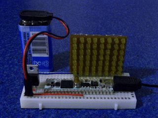 Hey, sieht sehr hübsch aus. Die LED-Matrix sieht wie ein fertiges Modul aus. Wo hast du das denn her, und wie teuer war es? Was für ein Multiplexing verwendest du, und mit welchem Strom fährst du die Dioden? 30Hz ist wahrscheinlich noch nicht so der Hit. Wie wäre es mit verteilen, z.B. auf 4 mega8?
