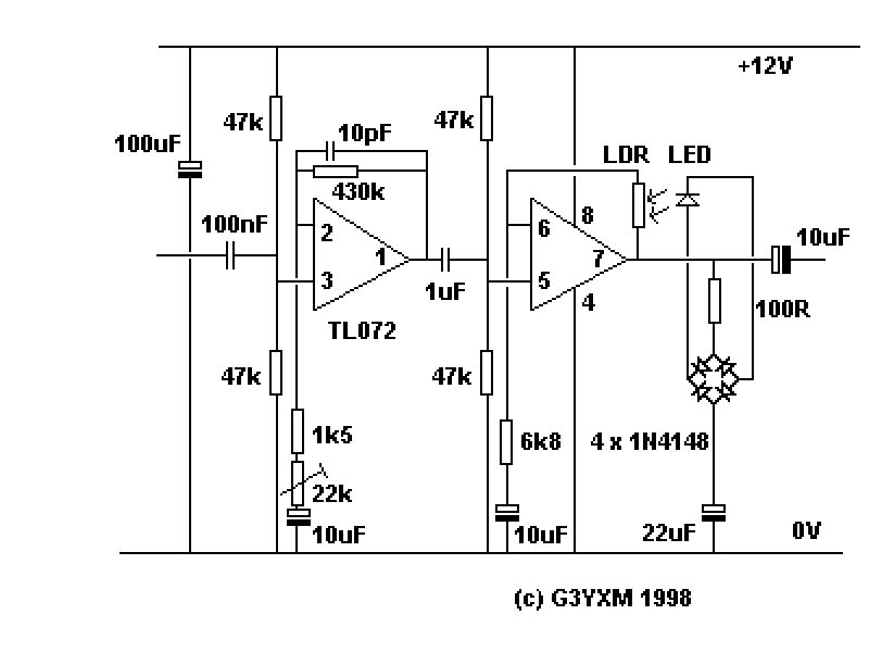 Kompressor-Schaltungen mit LDRs gabs früher mal, jetzt nimmt man ICs dafür, z.B. SSM2165. Außerdem funktioniert der Link nicht (Man kommt nicht zur Schaltung).