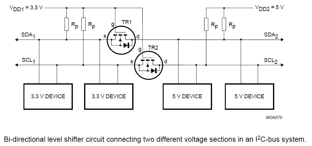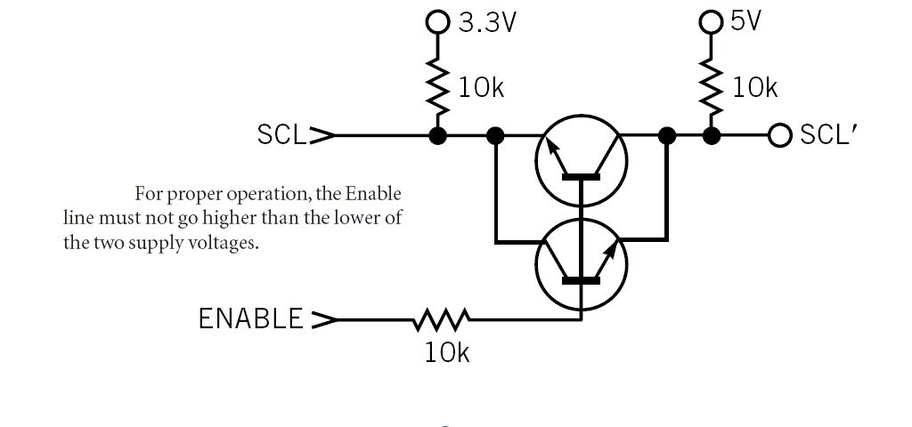 OK, danke nochmal. Werde mein Eeprom jetzt zusammen mit dem Mikrocontroller an 3,3V betreiben. Will trotzdem nochmal das Thema I2C Levelshifter aufwärmen. Habe da die Schaltung im Anhang gefunden. Diese arbeitet mit zwei bipolaren NPN Transistoren. Frage: währe es eventuel nützlich, die beiden Basisanschlüsse zu trennen und zwei getrennte Widerstände zur jeweiligen Versorgungsspannung zu verwenden?