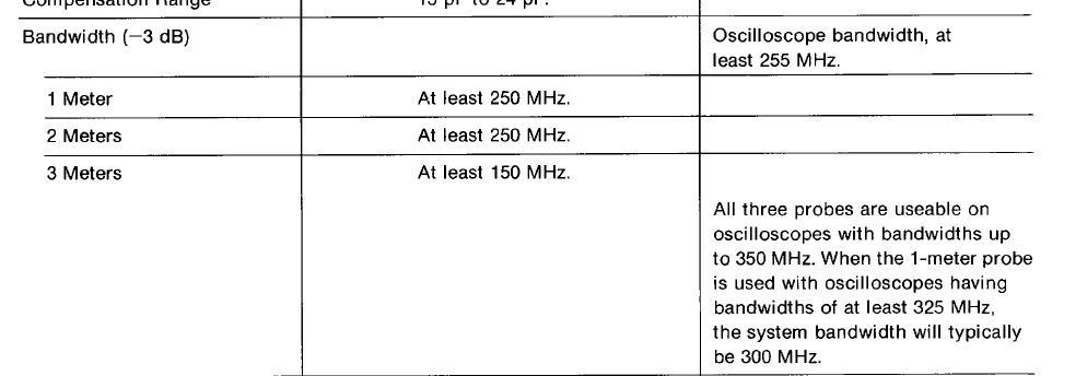 Nur steht in der Webseite von Tek zum P6106A eine Bandbreite von 250MHz