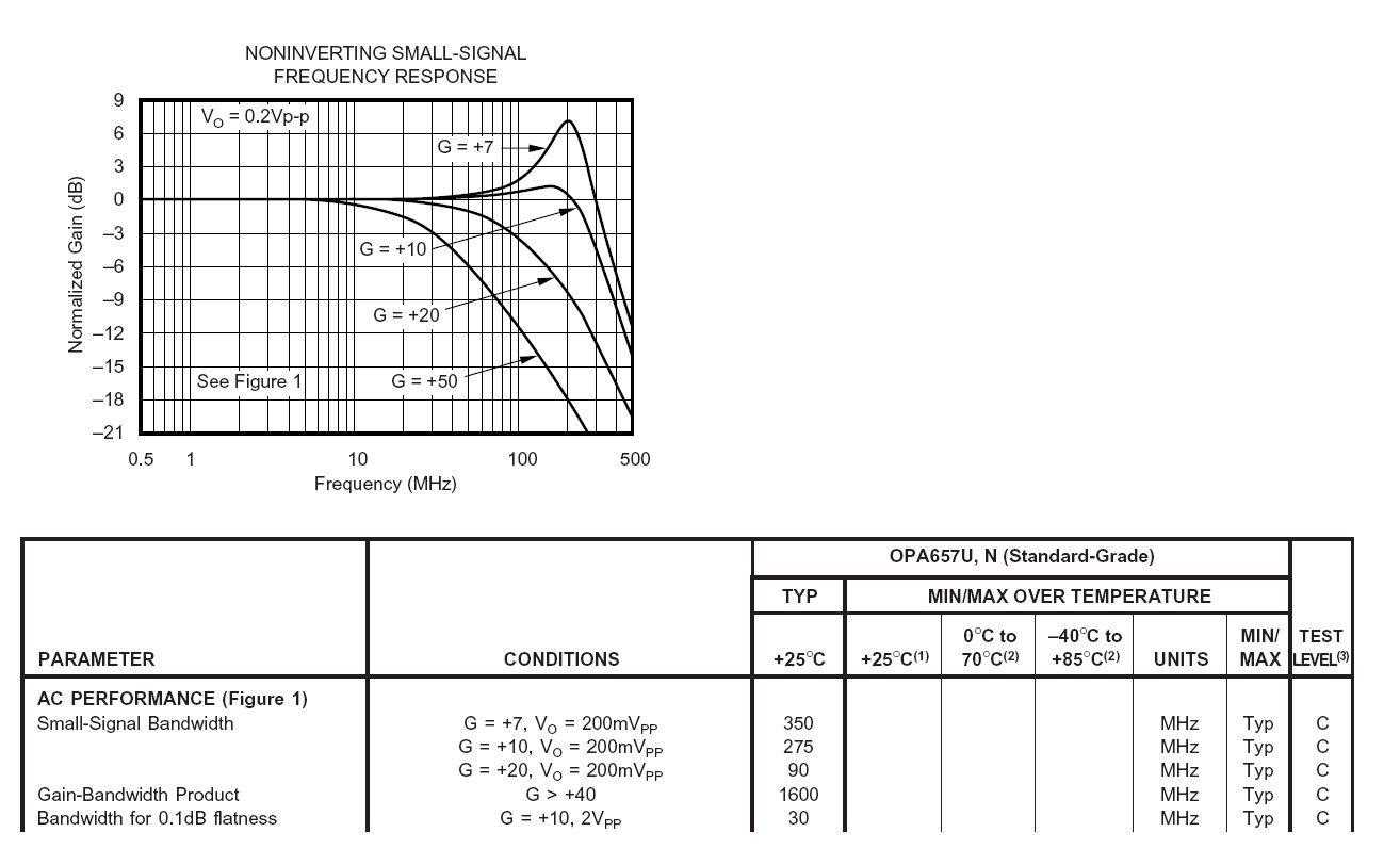 Die AV=+7 -3dB BW wird mit 350MHz angegeben obwohl vorher erst mal ein