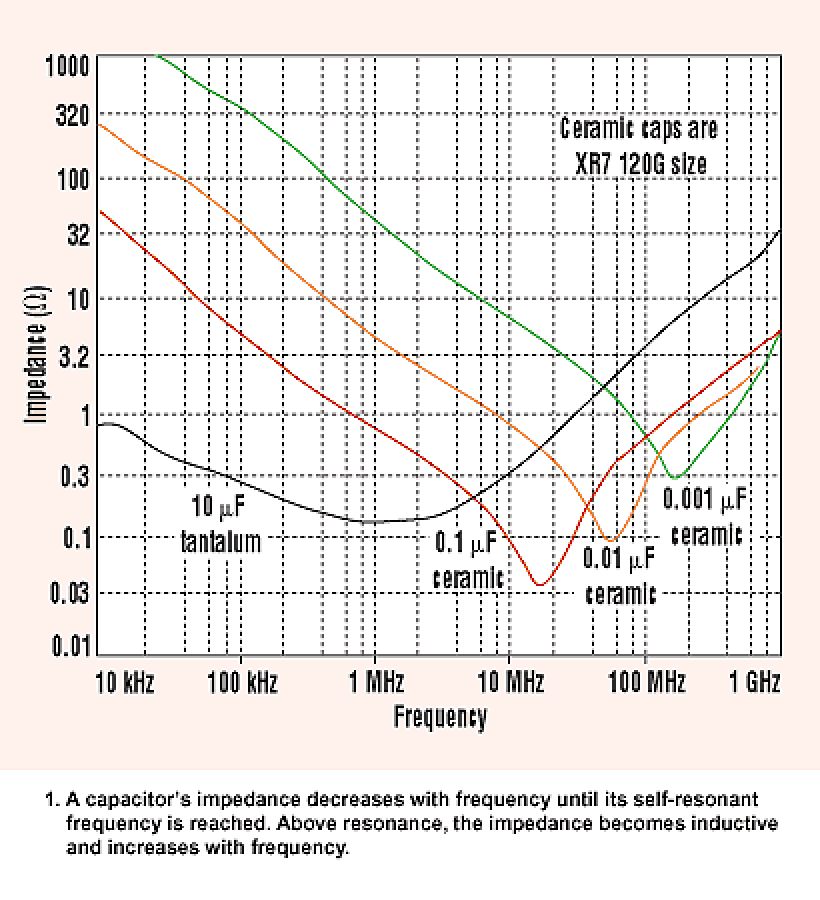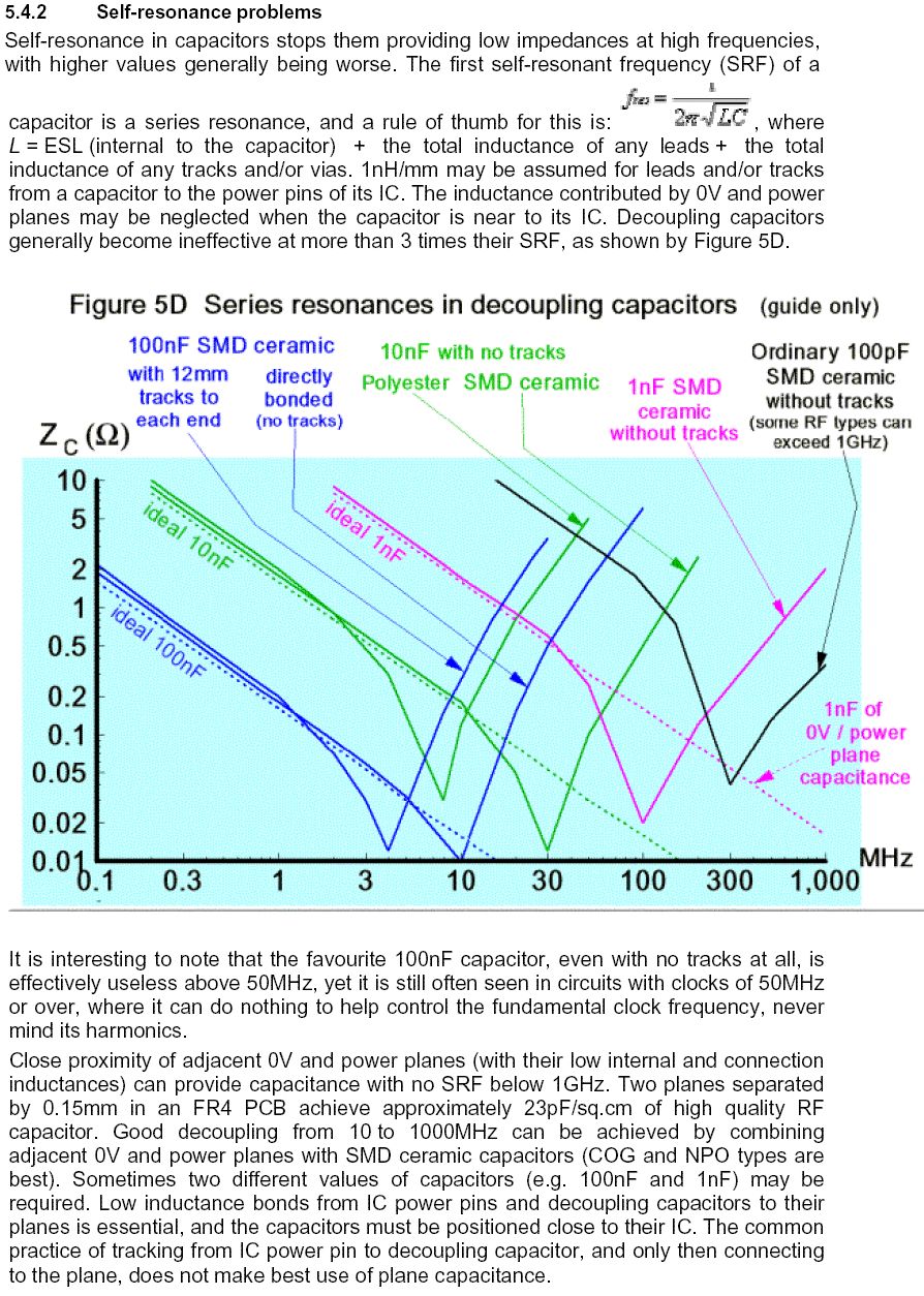 HildeK wrote: > Will oder muss man sparsam mit Cs umgehen, dann zeigt das Bild auch, > dass eine Kombination aus 1µF und 10nF ... 1nF schon einen sehr großen > Bereich abdeckt und sinnvoller ist, als die häufig verwendeten 100nF. Sollte man meinen. Indes: http://download.cypress.com.edgesuite.net/design_resources/application_notes/contents/using_decoupling_capacitors___an1032_12.pdf