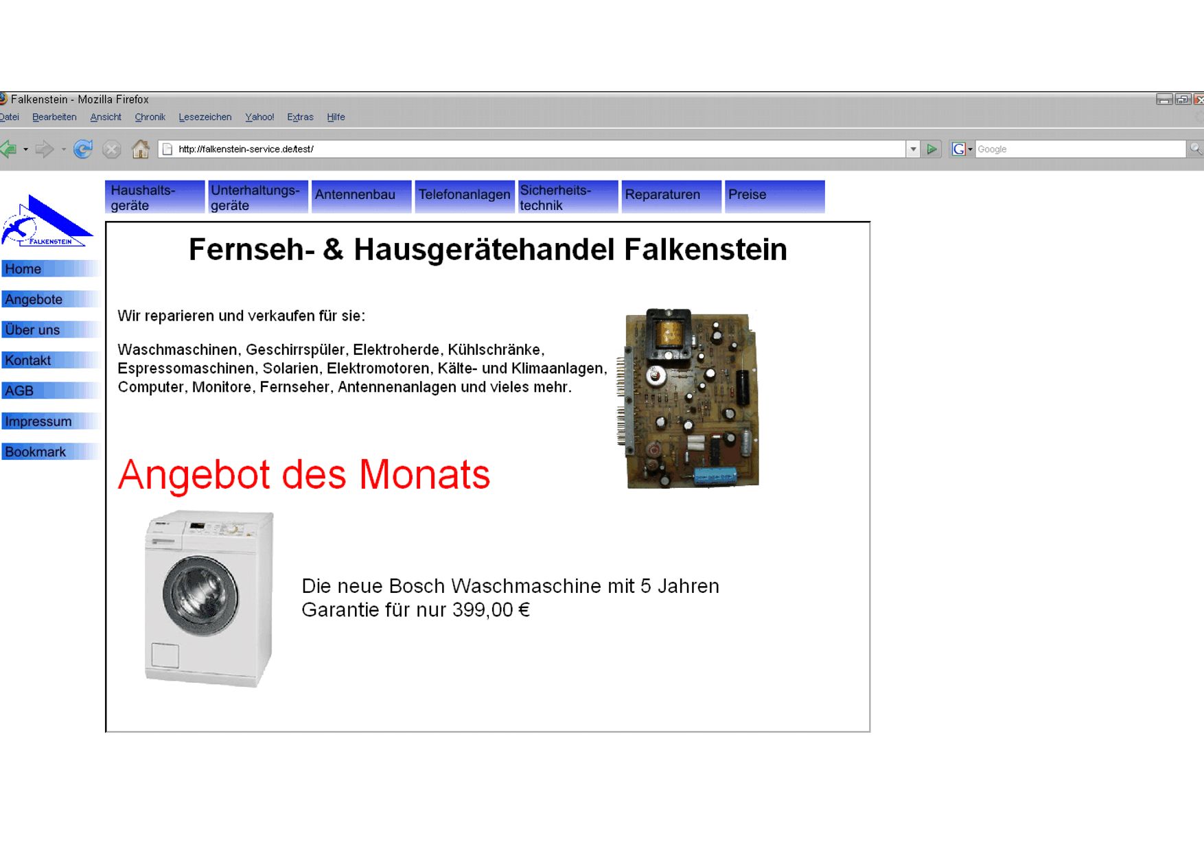 Impressum ist ungenügend und die abgebildete Platine auf der Startseite schon fast eine "Frechheit". Bei 156*180 Pixel über 430 KB zeigt, dass du dir nicht vorstellen kannst, dass es auch noch Nutzer mit ISDN oder Modem gibt. Ein wenig Komprimierung täte dieser Grafik gut! ;-)
