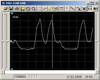 >Blumentopf gewinnen kannst .... 100MS/s DSO-2100. USB Osci Voltcraft. Natürlich Conrad ! >100MS/s Wenns das mal wirklich schafft. Bis zu 40Mhz Bandbreite pro Kanal laut Datenblatt. Bei 100MS/s wohlgemerkt ! Die Abtastrate teilt sich sicherlich auch auf beide Kanäle auf. Pro Kanal 100MS/s wohl eher nicht. Die Beulen in der Kurve kommen vermutlich von zu kleiner Abtastrate. China Scheiße halt ;)