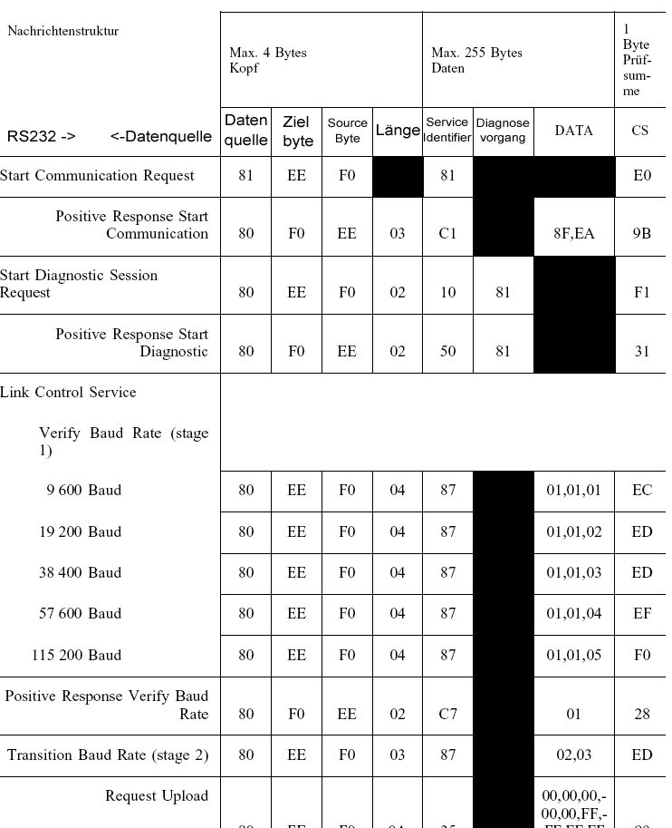 Richtig. Das Problem liegt ganz klar beim Protokoll. Auszug hängt an. Spätestens beim Aushandeln der Baud Rate hört es bei mir auf.