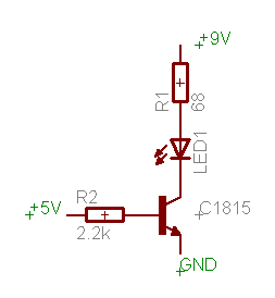 Hallo, ich habe folgendes Problem: Ich möchte eine IR-Fernbedienung bauen, die mit einer 9V Batterie läuft. Der Controller hängt hinter einem 78L05, die IR-Diode möchte ich mit einem Transistor (hab's jetzt mit einem C1815 versucht, den hatte ich gerade da) direkt an den 9V betreiben, so wie in der angehängten Datei. Irgendwie funktioniert diese Schaltung aber nur, wenn die Spannung an der Basis und am Collector gleich sind, mit 5V und 9V geht der Strom nicht über 20mA. Muss ich einfach den Basiswiderstand kleiner dimensionieren? Vielen Dank im Voraus und beste Grüße, Bartl
