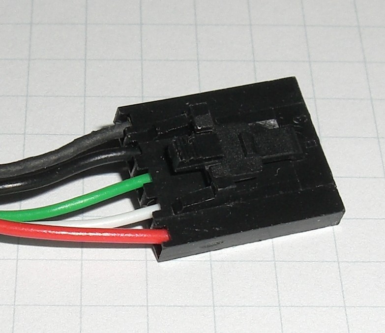 Der fünfte Pin ist wahrscheinlich die Abschirmung. Die Farben sprechen jedenfalls für USB. Wenn ich davon ausgehe, dass das 5mm kariertes Papier ist, dann könnte es sich um einen Rasterabstand von 2,54mm handeln. Ich diesem Fall könnte man eine normale einreihige Buchsenleite nehmen. Die rastet zwar nicht ein, aber wenn man nichts anderes bekommt...