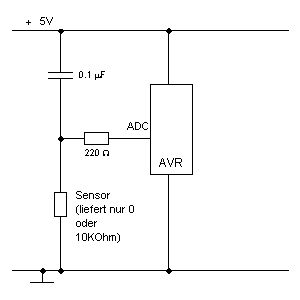 Muss ich denn überhaupt den ADC nutzen? Im AVR-GCC-Tutorial steht drin, dass man die Analog-Digital-Wandlung ohne internen ADC machen kann zur Messung eines Widerstandes. Welche Variante ist denn nun die beste?