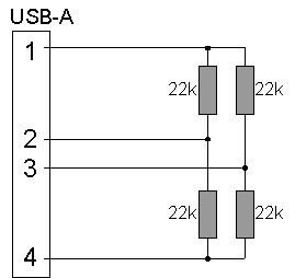 Danke Patrick Lemb! die Lösung funktioniert wirklich gut. Das lustige ist, das ist genau die lösung, die ich am anfang ausgeschlossen hab :-) > zb.: > 1. D+ und D- mit 1kOhm R verbinden > 2. beide auf masse kurzschließen > 3. beide pulldown > 4. beide pullup > 5. beide auf 2,5V (kann ich am wenigsten verstehen??)