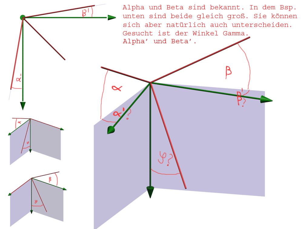 also rein von der logik her ist es imho unmöglich alpha' und beta' zu bestimmen wenn nur alpha und beta bekannt sind. denn die 3 roten achsen lassen sich doch zu den 3 grünen "verdrehen", so das sich alpha' und beta' ändern, ohne das sich alpha und beta ändern. oder liege ich da falsch?