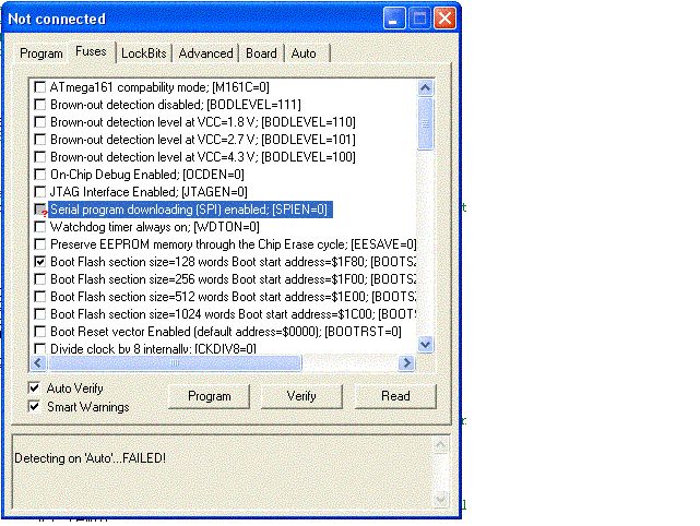 Doc: Datenblatt des ATmega162 bei den Fuses. SPIEN: Fuse zur Freigabe der Programmierung über SPI (seriell) Frohe Weihnachten! Rahul