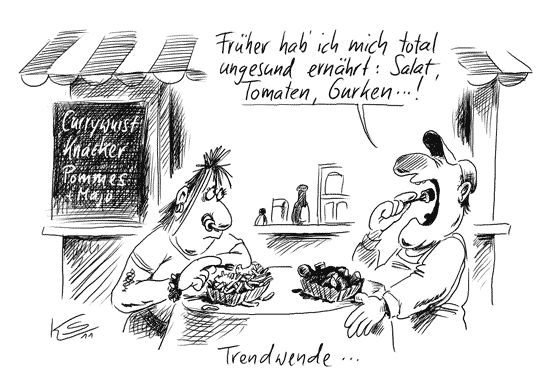 Jetzt wird der Urheber schon relativiert. Wie der Erreger auf das Grünzeug kam wurde bisher nicht berichtet. Eine Mitarbeiterin soll EHEC-positiv sein. Nur hat die es von dem Grünzeug mit dem sie arbeitet oder das Grünzeug von ihr? Letztendlich wird man erst eine direkte Verbindung zu Rindviechern finden müssen um die Quelle wirklich dicht machen zu können. Ein Gemüsegroßhändler hat im Fernsehen damit geprallt das alle seine Beschäftigten(mehrere hundert) sein Grünzeug essen und keiner krank ist. Bitte? Hat er seine Leute gezwungen? (Esst das Gemüse oder ihr könnt gehen?) Hat er nicht gesagt, aber es hörte sich irgendwie nach Nötigung an. Auf den Wochenmärkten ist das Konsumverhalten jedenfalls grottenschlecht, so das die Händler das Zeug Kistenweise für einen Euro verscherbeln. Ein Kunde hatte da keine Bedenken, wäre eh nur für seine Kaninchen. Muss ja sehr tierlieb sein das Riskio seinen Tieren zuzumuten. Sind ja nur Tiere.