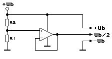 Nur, wenn dein GND (und damit auch +Ub) potentialfrei ist, also aus einer eigenen Versorgung stammt. Und natürlich kann diese künstliche "Masse" (Ub/2) nur soviel Strom verarbeiten, wie der verwendete OP-Amp am Ausgang treiben kann. Denn der muß sie ja erzeugen.