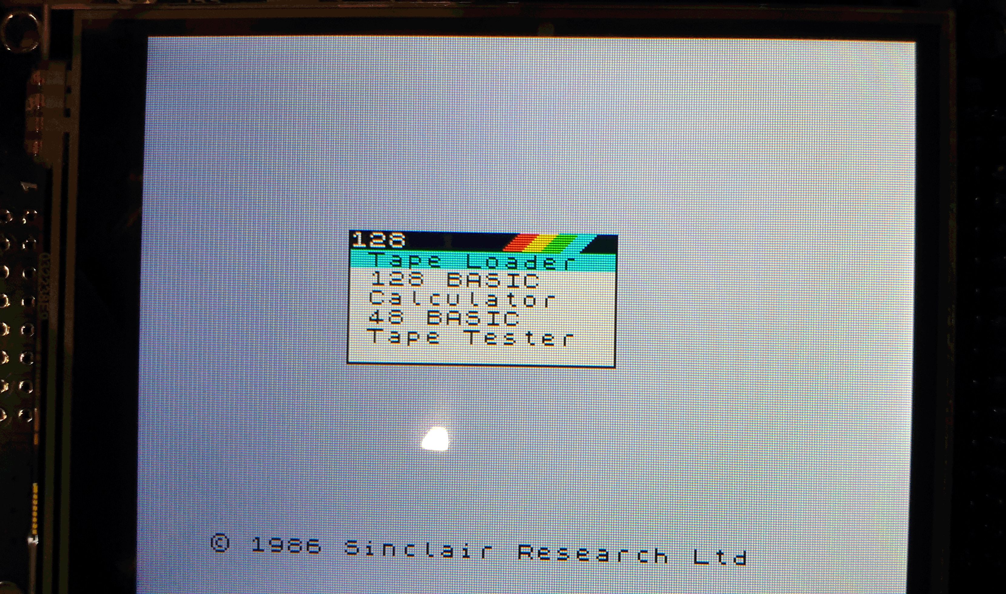Als Display wird ein 7-Zoll-TFT-Display mit 800x480 Pixeln und SSD1963-Controller verwendet. Dabei wird der Spectrum-Screen von der ursprünglichen Auflösung von 256 x 192 Pixeln auf 512 x 384 Pixel aufgebohrt.