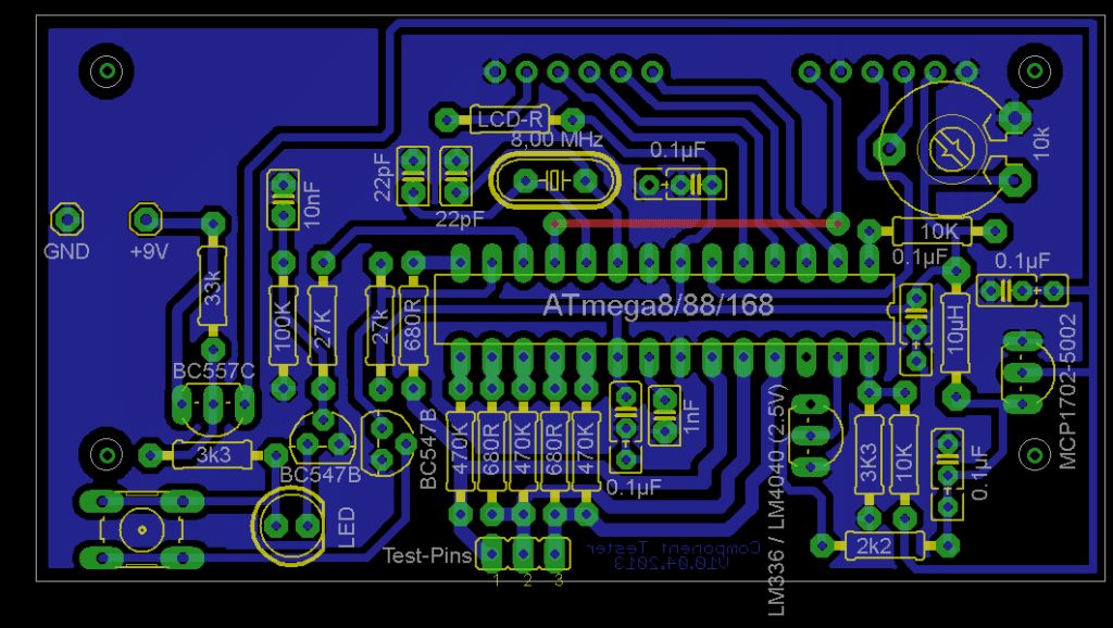 good morning everyone, I have programmed atmega328p, unfortunately nothing appears on the 16x2 display, strange because it works well with the 1.12k version in English on my component tester. maybe I should make another pcb more aggressive or wrong ?, picture of my pcb